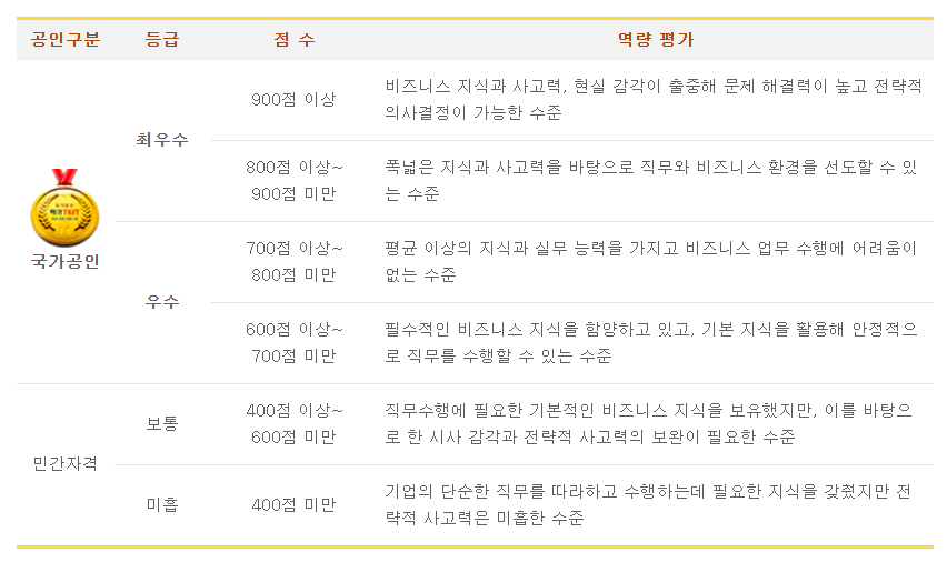 80문항 1000점 기준 600점 이상인 경우 국가공인 자격을 주는 경제/경영시험