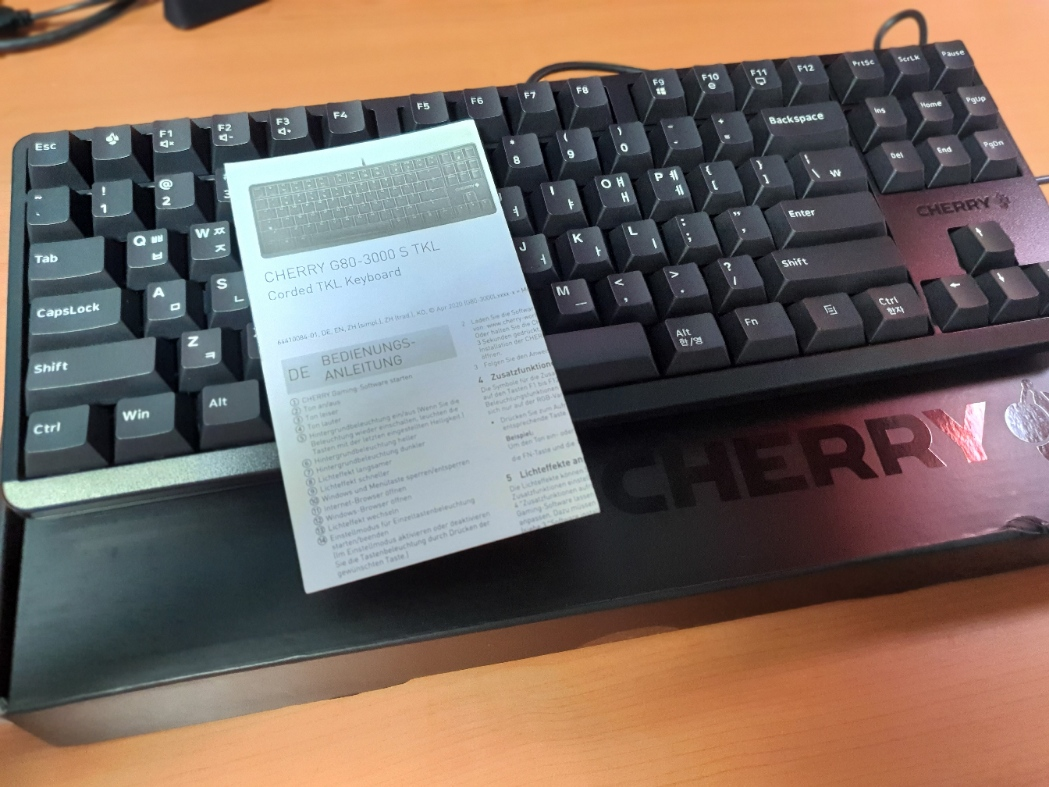 굳이 단점을 꼽으라고 하자면 뭐가 있을까 생각해 보았는데, 체리 키보드라면 항상 붙어있다는 ESC 옆의 체리키가 처음에는 적응 안된다? 백라이트가 없다? 체리 키보드 전용 소프트웨어가 구리다? 정도 이려나?