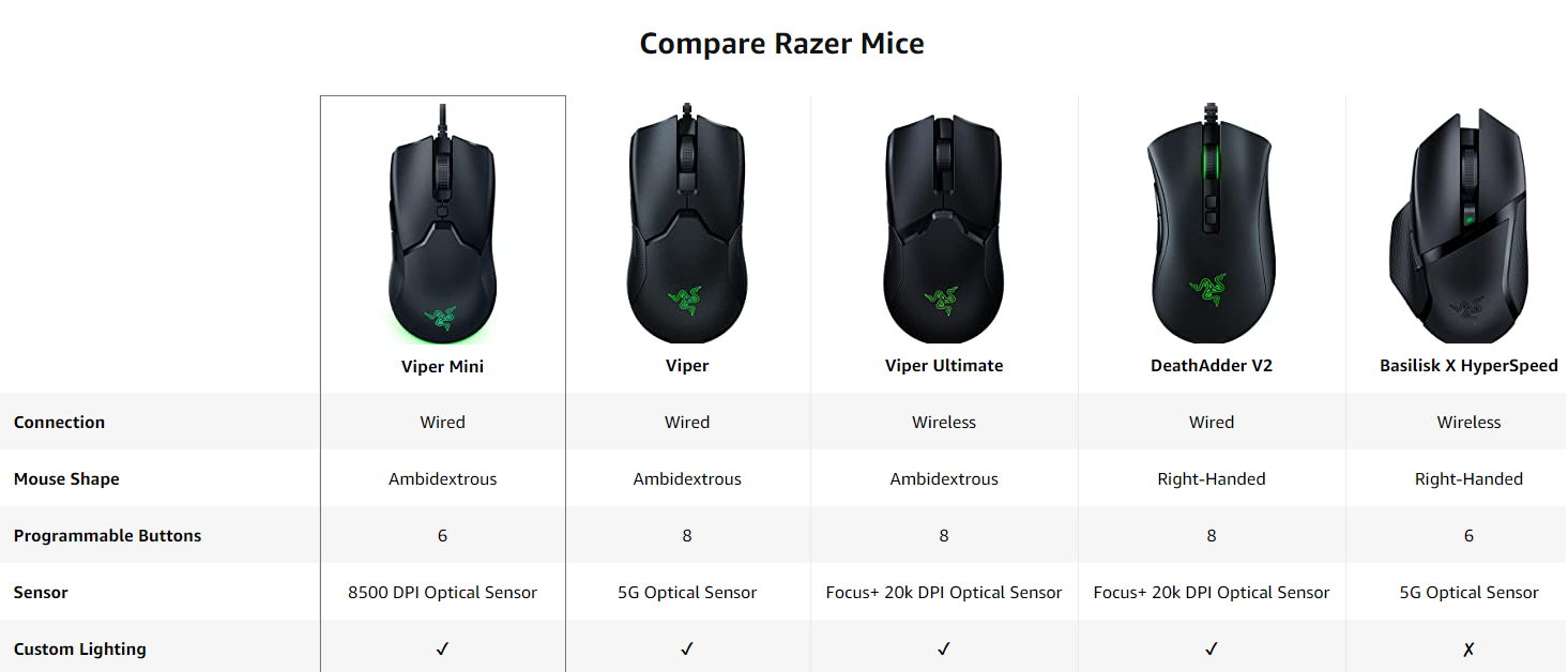 레이져에서는 다양한 종류의 마우스를 판매 하는데, 그 중에 가장 대표적인 모델이 바이퍼Viper 시리즈 이다.