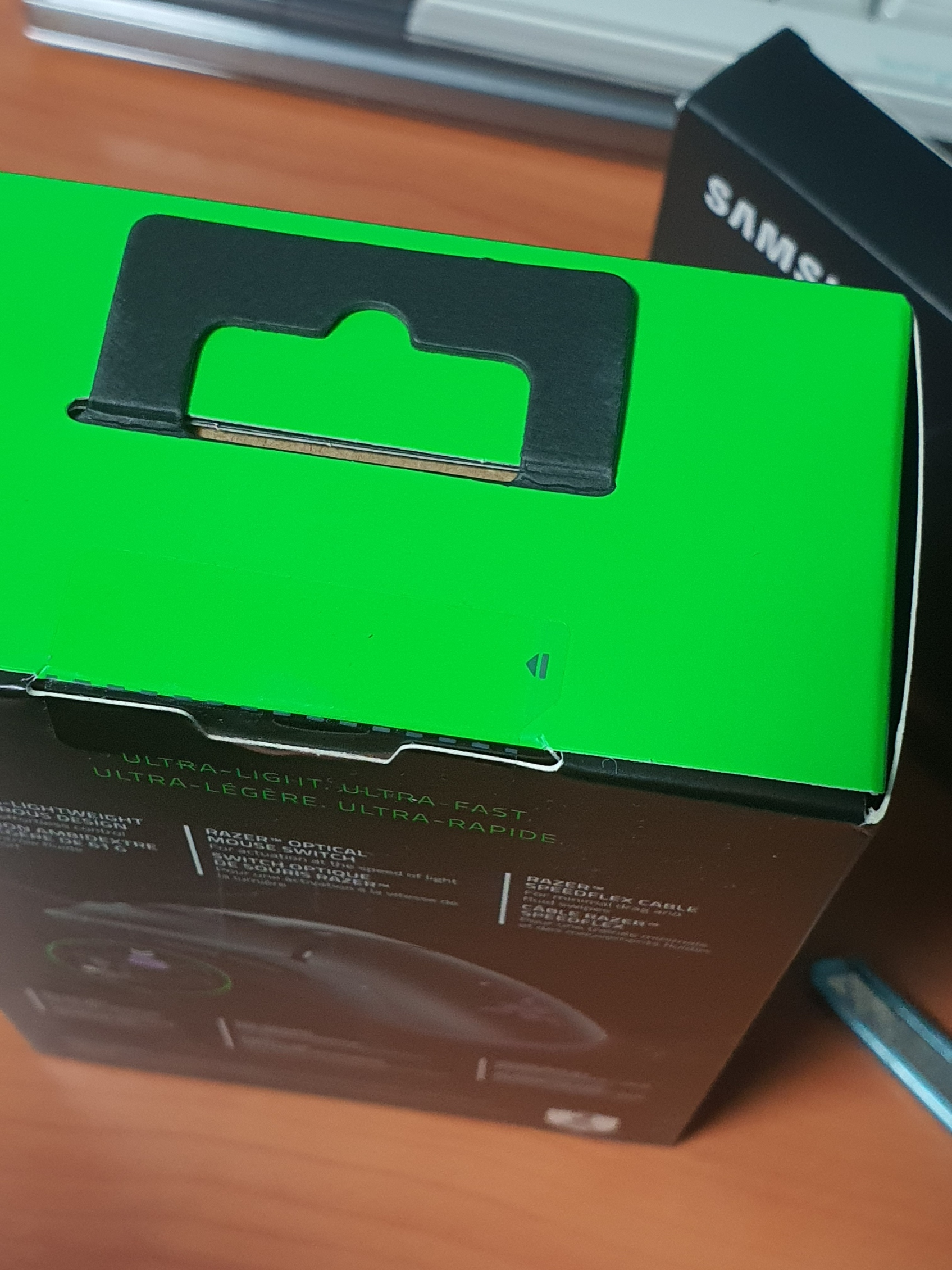 깔끔하면서 세련된 느낌의 로켓 카인 무선마우스 박스였다면, 레이져는 한눈에 봐도 그 아이덴티티가 분명한 느낌이였다.