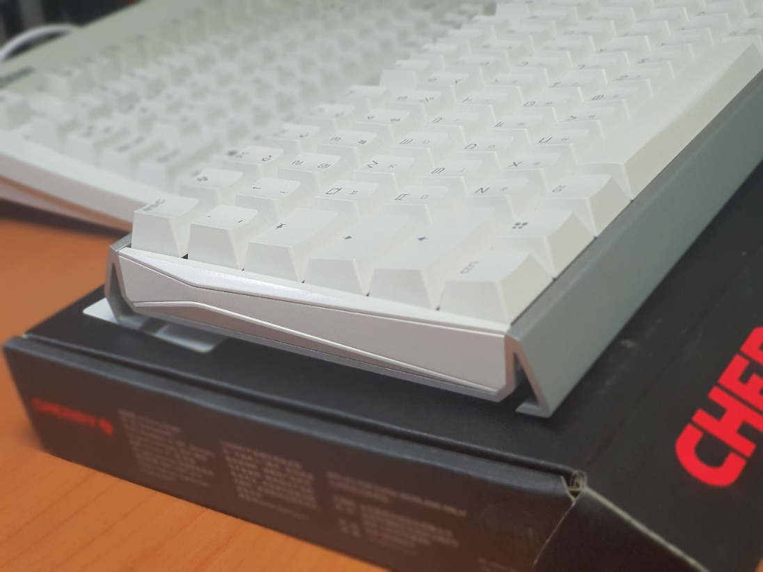 체리 mx board 3.0s 블랙 색상과는 다르게 체리 mx board 3.0s 화이트 색상은 하우징의 체리 로고가 훨씬 더 선명하게 보인다.