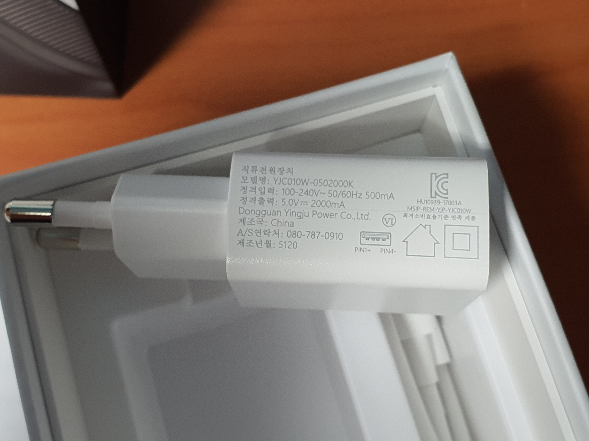 구성품은 A to C타입 충전단자와 청소솔이 함께 들어있다.
