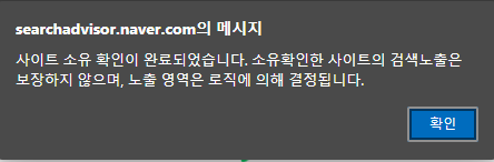 그리고 나서 서치 어드바이저로 돌아가서 [소유확인]을 클릭하면 아래와 같은 탭이 뜨는걸 볼 수 있다.