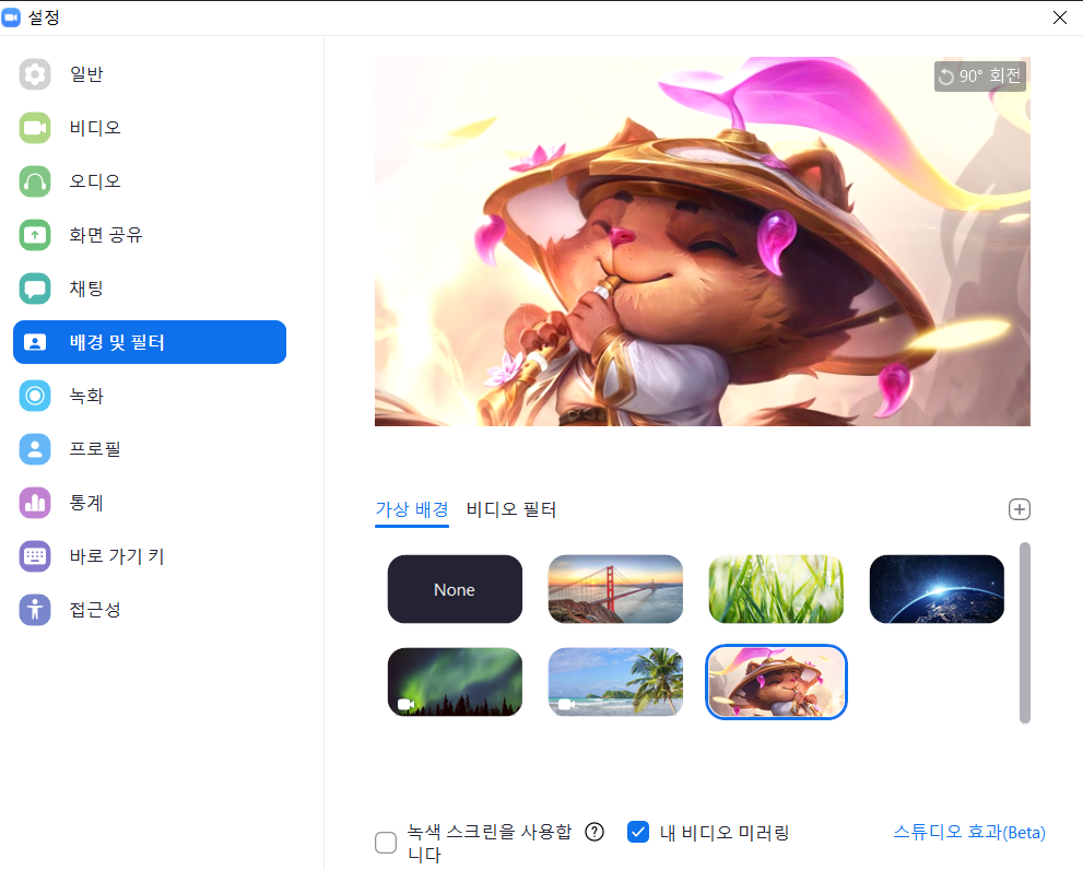 이런 식으로 배경을 설정하면 다른 회의에 참가해서도 내 뒷배경을 내가 원하는 가상배경으로 바꿀 수 있다는 점!