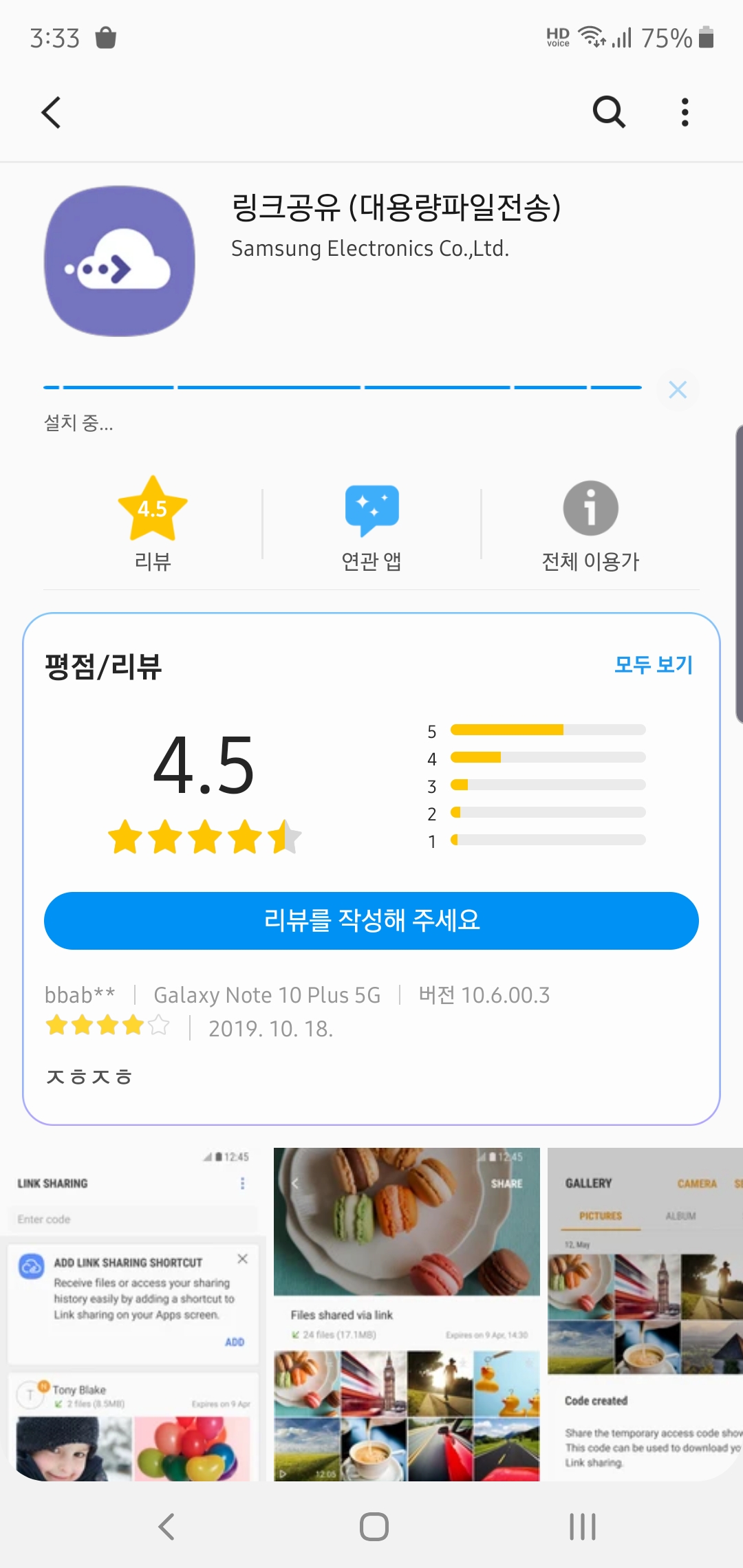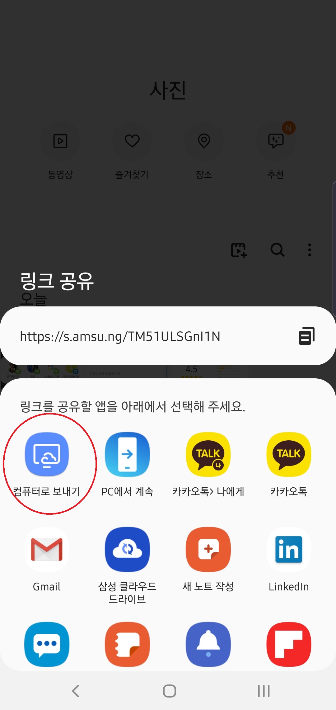 그래서 다른 방법을 모색하는 중에 링크공유라는 앱으로 사진공유가 된다는 정보 입수.